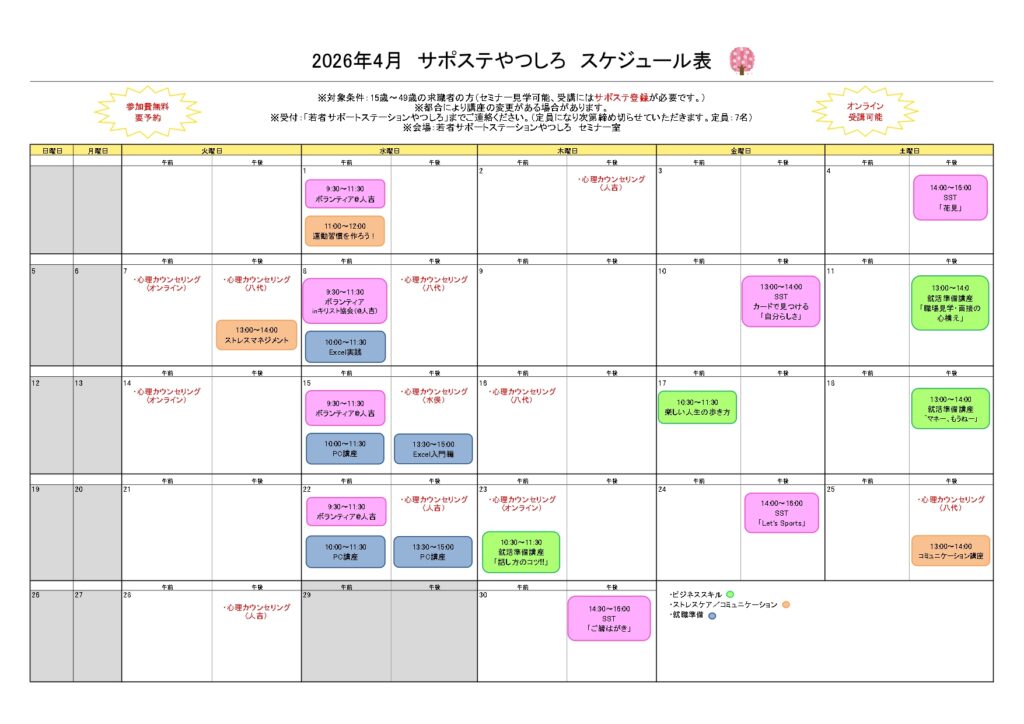 Home › 未分類 › 4月スケジュールのご案内 2026-03-24 4月スケジュールのご案内 関連記事 3月のスケジュール案内になります 11月スケジュールのご案内 9月のスケジュール案内になります 3月スケジュールのご案内 7月のスケジュール案内になります 3月スケジュールのご案内